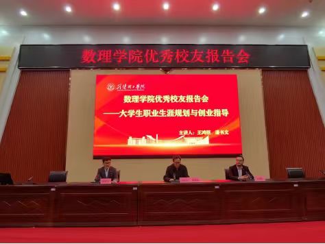 11月3日,数理学院在行政楼C201学术报告厅举办“大学生职业生涯规划与创业指导”主题报告会,特邀优秀校友王鸿铭、潘书文担任主讲嘉宾。200余名师生代表参会。